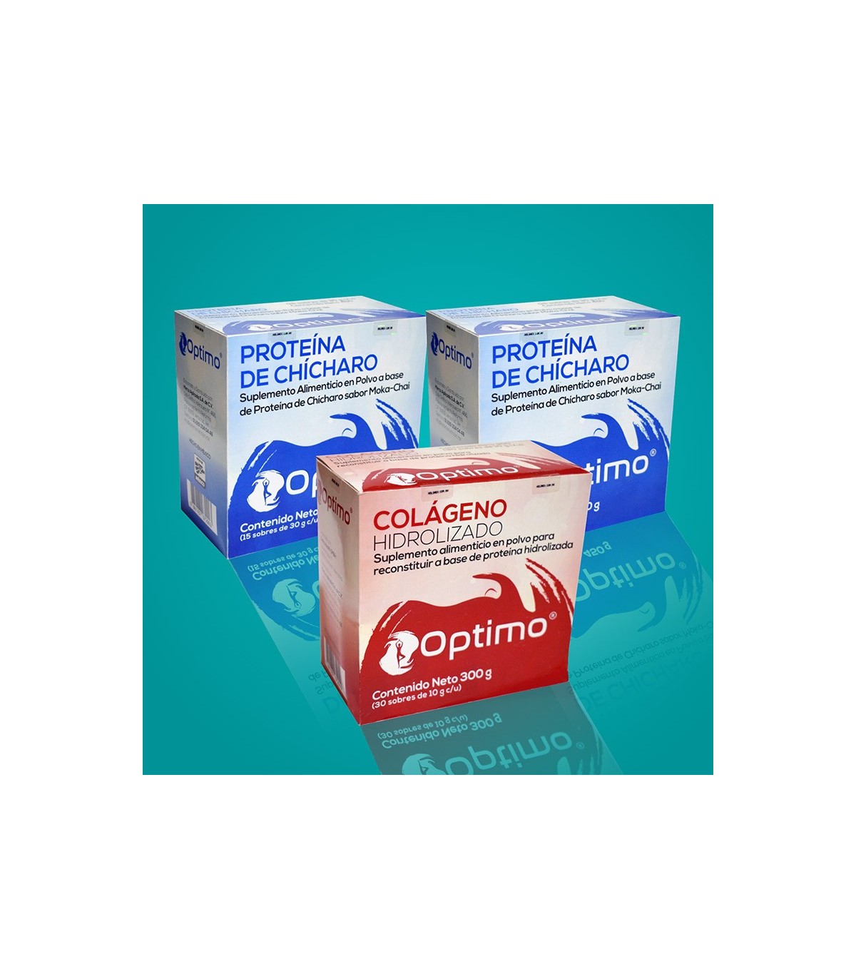Este paquete consta de 2 cajas de proteína de Chícharo Amarillo Sabor Moka-Chai (30 tomas o días) y 1 Caja de Colágeno Hidrolizado Sin Sabor (30 tomas o días) que por porción te aportan.-