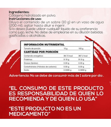 Diluya el contenido de 1 sobre con 10 gramos en un vaso con la bebida de su preferencia e ingiéralo (no debe ser gasificada o alcohólica)